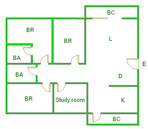 ▲ E(入口)=entrance BR (洋室)=Bedroom BA (浴室)=Bathroom
