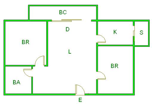 ▲ E(入口)=entrance BR (洋室)=Bedroom BA (浴室)=Bathroom