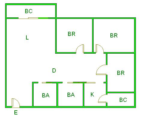 ▲ E(入口)=entrance BR (洋室)=Bedroom BA (浴室)=Bathroom