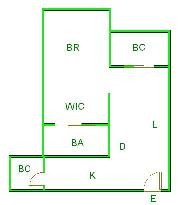 ▲ E(入口)=entrance BR (洋室)=Bedroom BA (浴室)=Bathroom