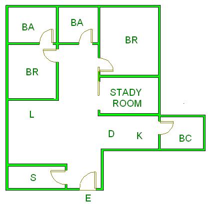 ▲ E(入口)=entrance BR (洋室)=Bedroom BA (浴室)=Bathroom