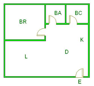 ▲ E(入口)=entrance BR (洋室)=Bedroom BA (浴室)=Bathroom