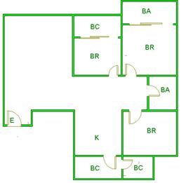 ▲ E(入口)=entrance BR (洋室)=Bedroom BA (浴室)=Bathroom