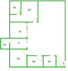 ▲ E(入口)=entrance BR (洋室)=Bedroom BA (浴室)=Bathroom