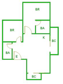 ▲ E(入口)=entrance BR (洋室)=Bedroom BA (浴室)=Bathroom