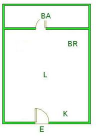 ▲ E(入口)=entrance BR (洋室)=Bedroom BA (浴室)=Bathroom