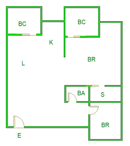 ▲ E(入口)=entrance BR (洋室)=Bedroom BA (浴室)=Bathroom