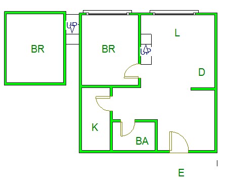 ▲ E(入口)=entrance BR (洋室)=Bedroom BA (浴室)=Bathroom