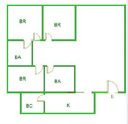 ▲ E(入口)=entrance BR (洋室)=Bedroom BA (浴室)=Bathroom