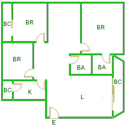 ▲ E(入口)=entrance BR (洋室)=Bedroom BA (浴室)=Bathroom