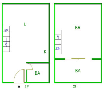 ▲ E(入口)=entrance BR (洋室)=Bedroom BA (浴室)=Bathroom