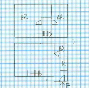 ▲ E(入口)=entrance BR (洋室)=Bedroom BA (浴室)=Bathroom