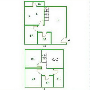 BC (ベランダ)=Balcony JR (和室)=Japaneseroom K (台所)=Kitchen