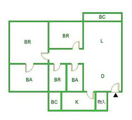 BC (ベランダ)=Balcony JR (和室)=Japaneseroom K (台所)=Kitchen