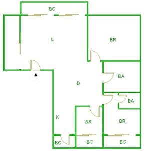▲ E(入口)=entrance BR (洋室)=Bedroom BA (浴室)=Bathroom