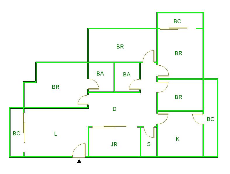 BC (ベランダ)=Balcony JR (和室)=Japaneseroom K (台所)=Kitchen