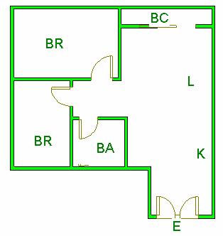 ▲ E(入口)=entrance BR (洋室)=Bedroom BA (浴室)=Bathroom
