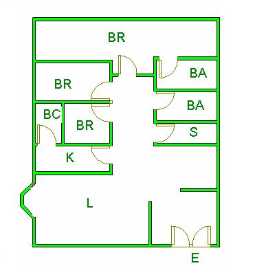 ▲ E(入口)=entrance BR (洋室)=Bedroom BA (浴室)=Bathroom