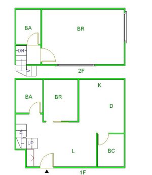 ▲ E(入口)=entrance BR (洋室)=Bedroom BA (浴室)=Bathroom