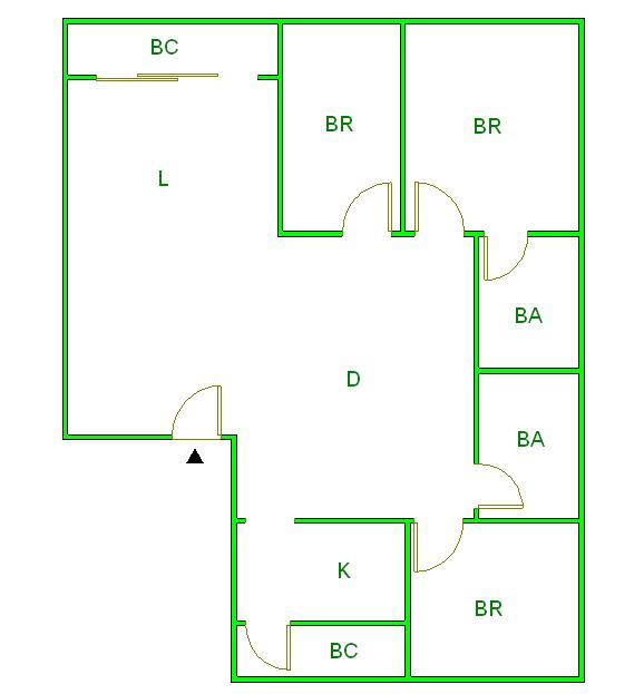 ▲ E(入口)=entrance BR (洋室)=Bedroom BA (浴室)=Bathroom