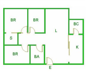 ▲ E(入口)=entrance BR (洋室)=Bedroom BA (浴室)=Bathroom