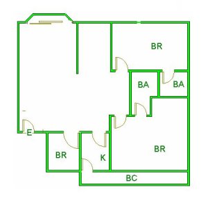 ▲ E(入口)=entrance BR (洋室)=Bedroom BA (浴室)=Bathroom