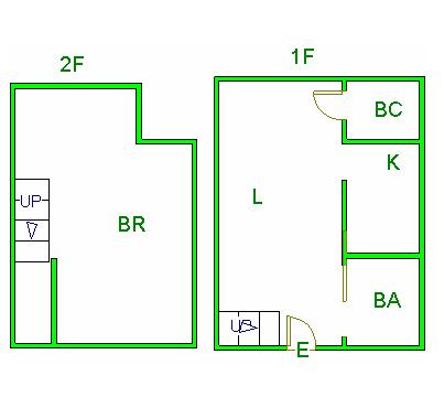▲ E(入口)=entrance BR (洋室)=Bedroom BA (浴室)=Bathroom