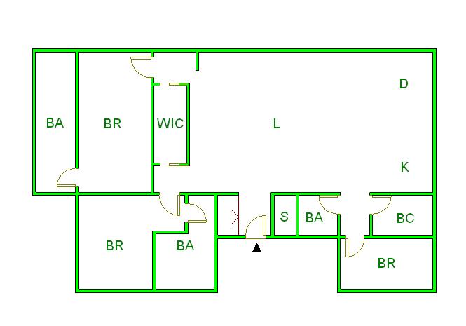 ▲ E(入口)=entrance BR (洋室)=Bedroom BA (浴室)=Bathroom