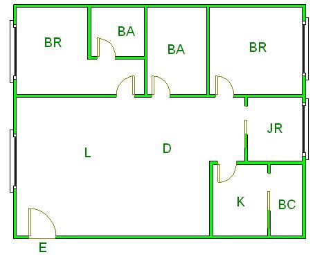 ▲ E(入口)=entrance BR (洋室)=Bedroom BA (浴室)=Bathroom