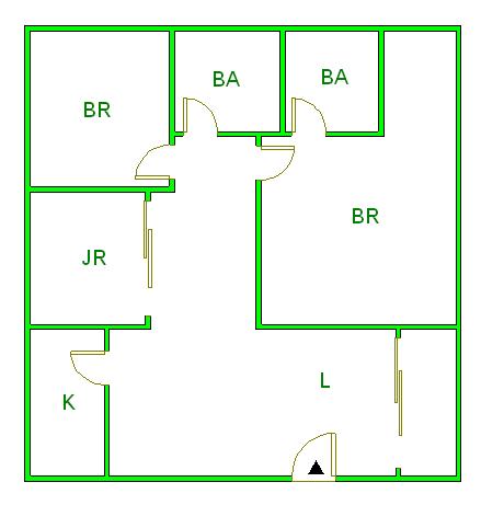 ▲ E(入口)=entrance BR (洋室)=Bedroom BA (浴室)=Bathroom